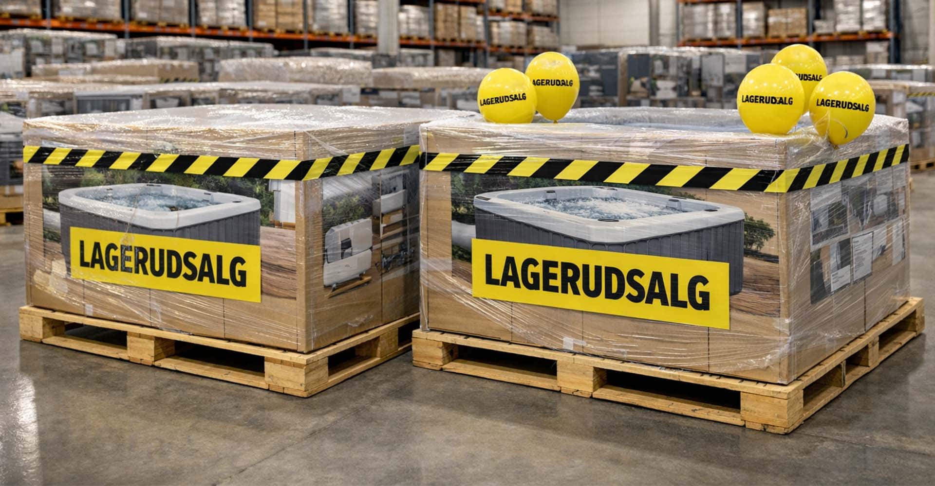 Vores nye 2026 modeller lander om lidt, så vi har nu begyndt vores lagerudsalg på fabriksnye udendørs spabade med f.eks. udgåede farve- og udstyrskombinationer. Vi har også enkelte nyrenoverede og brugte spabade på lager til øjeblikkelig levering.